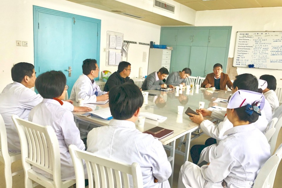 3月8日上午,党委书记金宗祥、纪委书记陈宏凯、党委副书记戴晓支和党委工作部部长丁长明一行赴内科党总支调研党建工作,内科党总支书记书记章秋及各支部书记、支委参加会议。内科党总支书记书记章秋首先汇报内科党总支2018年度党建工作情况及2019年工作计划,提出党总支层面党建工作取得的成绩和存在的问题等进行详细汇报,各支部书记、委员也从支部建设、学科建设、医院文化建设等方面相继建言。党委工作部丁长明肯定了内科党总支及所辖内科系统13个基层党支部的党建工作,在18年基层党组织标准化建设中全部达标。
