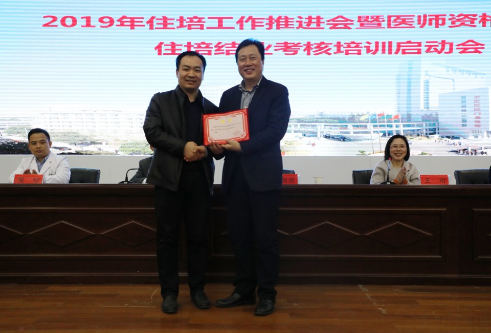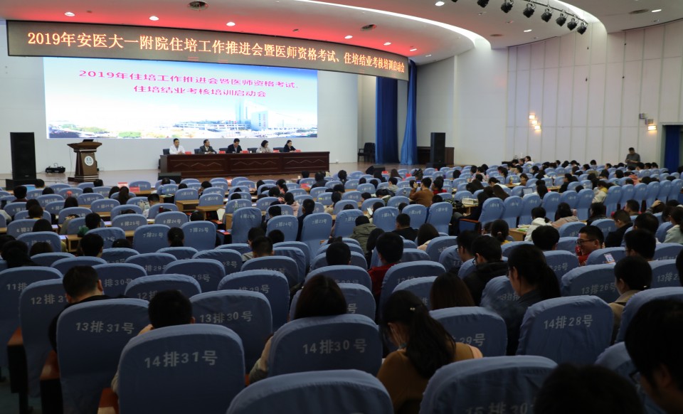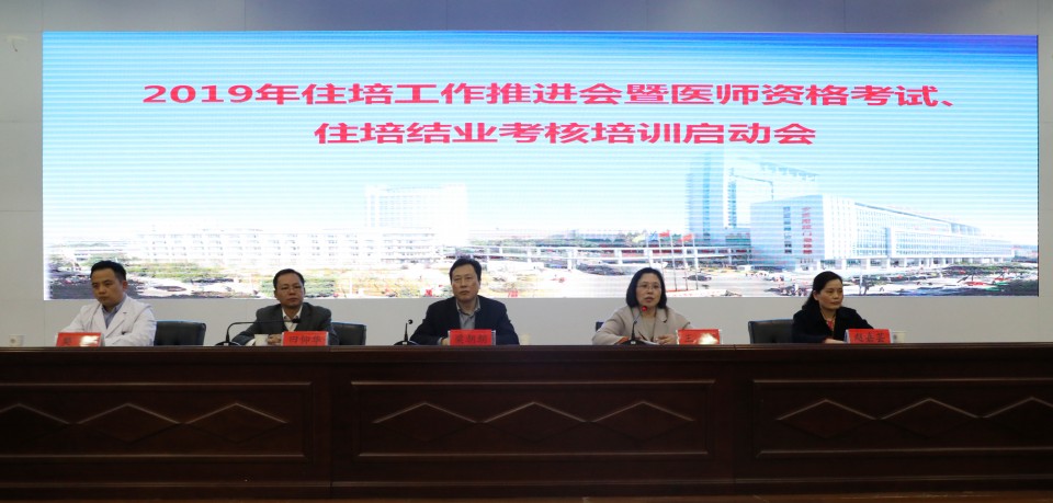 3月14日晚,医院召开2019年全院住院医师规范化培训(以下简称住培)工作推进会暨医师资格考试、住培结业考核培训启动会,总结2018年住培工作,对2019年住培工作进行部署,并启动医师资格考试培训。院长梁朝朝、副院长王珩、毕业后教育处处长田仰华、研究生党总支书记赵嘉芸、临床技能培训中心主任樊松出席会议。会议由副院长王珩主持。院长梁朝朝在讲话中指出,过去一年,医院在住培工作中巩固培训制度、重视过程管理、强化考核评估、完善激励机制、提升带教水平,各项工作取得显著成效。一是加强组织制度建设,规范住培管理,进一步加强住培工作领导。二是建立住培责任导师制,对住培学员全过程培养进行指导,全面提升学员综合能力。三是通过提高面向社会招收的培训对象补贴标准,新增执业医师注册补贴等多重举措,学员培训期间待遇得到进一步提高。四是举办省级全科师资、住培师资培训班以及县乡村医生培训班,进一步提升我院培训影响力。五是医院内科危重症医学等6个专科获批成为国家第二批专培试点基地,专培基地数达到8个,为省内领先。六是多位同志在国家、省、校住培优秀评选活动中获奖,多位同志担任国家住培督导专家、政策咨询专家,医院住培工作得到充分肯定。