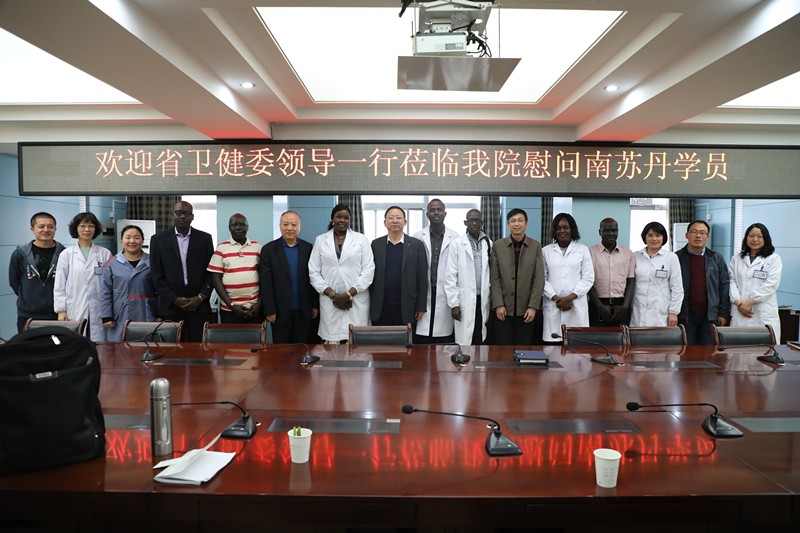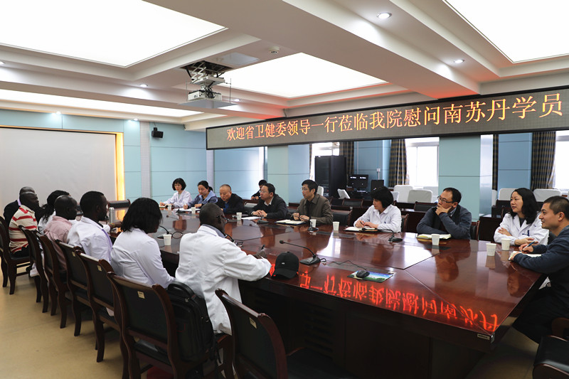 会上,党委副书记戴晓支对省卫健委领导一行赴我院慰问南苏丹医务人员表示欢迎并感谢省卫健委领导信任将此重任交于一附院承担,并就南苏丹医务人员的学习情况作了简要的汇报,表示医院对援外工作高度重视,对南苏丹医务人员的学习和工作做了精心安排。最后戴书记表示医院将按照省卫健委和项目要求,切实做好培训的各项工作,确保南苏丹医务人员在我院培训顺利进行,希望南苏丹学员学有所成,可以将所学切实服务于南苏丹人民,为两国友谊的桥梁添砖加瓦。