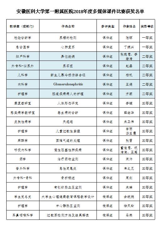 三、 医护质量优胜奖(10个)