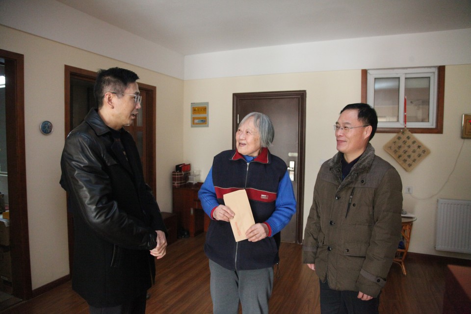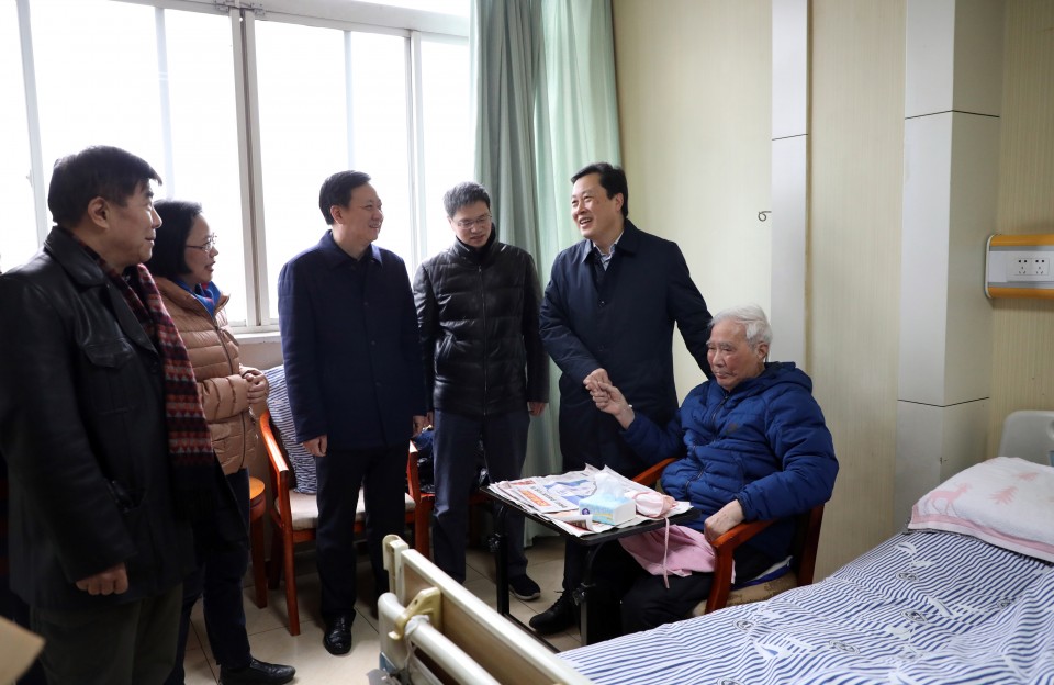 2019年春节来临之际,院领导金宗祥、梁朝朝、陈宏凯、周典、王珩、戴晓支,在相关职能部门负责人的陪同下,走访慰问了医院离退休老同志和困难职工。在离退休老同志、困难职工的家中,在医院病房里,院领导一行仔细地询问了他们的健康情况和生活状况,感谢他们为医院的建设和发展所做出的贡献,并为他们送去节日祝福。
