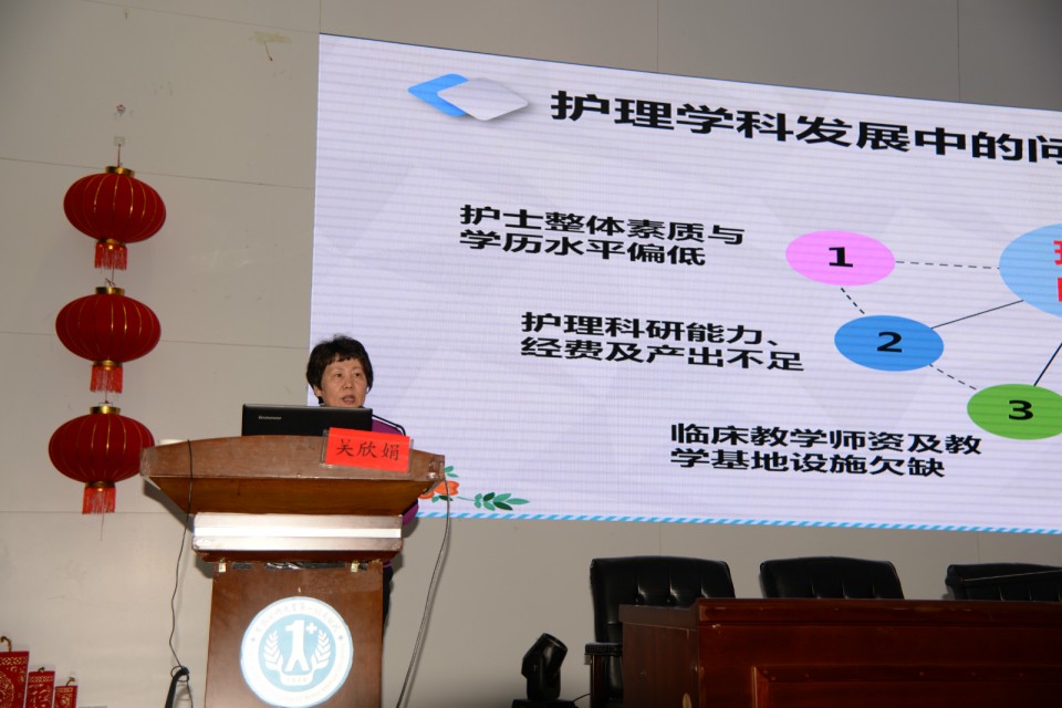 在随后的专家授课环节,各位护理专家紧贴护理服务业改革与发展的时代前沿,深入阐述了标准护理建规范、精细护理求完美、个性护理显特性、延伸护理促健康的服务理念。北京协和医院护理部主任吴欣娟发表了题为“护理学科建设 助力健康中国”的演讲。她以全局眼光和长远眼光透视当代护理的发展方位,强调在健康中国建设中发挥护理学科重要作用。北京301医院护理部副主任马燕兰以“弘扬南丁格尔精神 履行服务健康使命”为题,突出用护理服务托举健康梦,介绍了“身心并护”整体护理的内涵。安医大护理学院院长洪静芳站在护理学院和医院之间交流合作的角度,以“院部融合 推进护理教学与科研发展”为题,将坦诚以待、合作共赢、院院融合的可持续发展理念深入人心。泌尿外科护士长金宗兰在“科研创新我们一直在路上”的演讲中结合自己多年的临床科研实践经验,进一步介绍了护理科研精神和护理科研的具体实践。