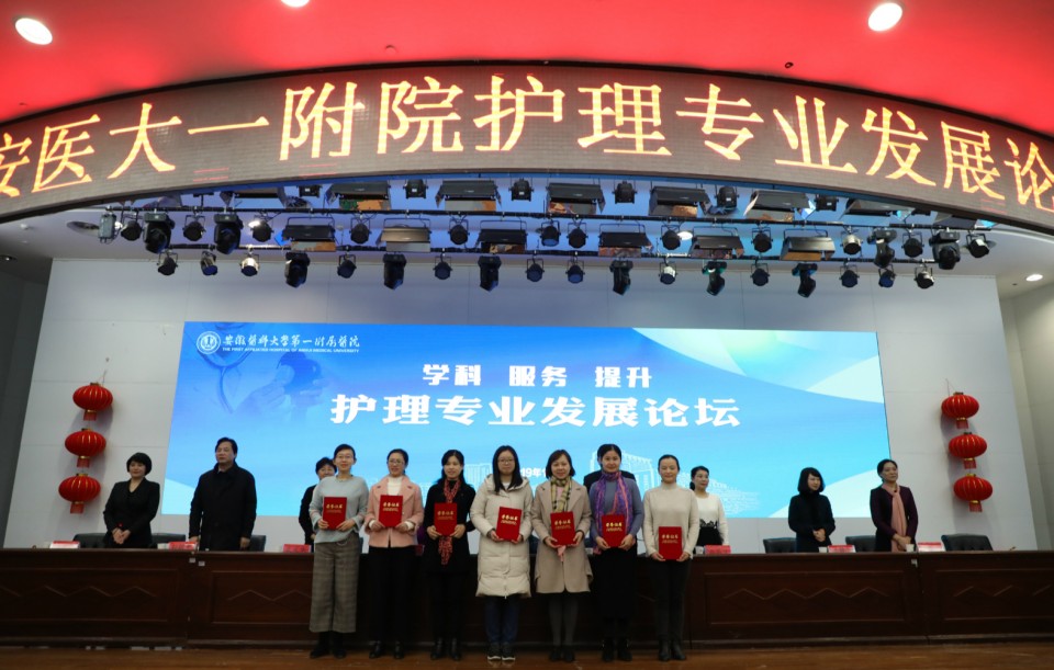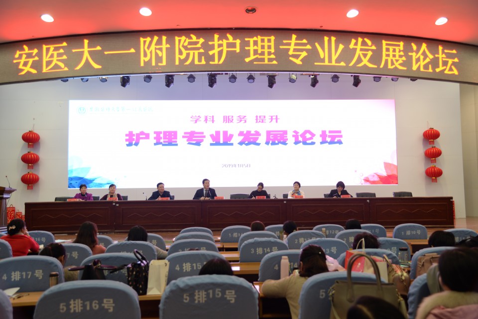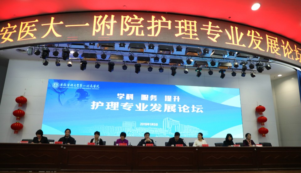 1月5日,“学科 服务 提升”——安医大一附院首届护理专业发展论坛在医院内科医技综合楼会议中心召开,安徽省科学技术协会副主席魏军锋;医院党委书记金宗祥;中华护理学会理事长、北京协和医院护理部主任吴欣娟;北京301医院护理部副主任马燕兰;安徽省护理学会理事长武义华;安徽医科大学护理学院院长洪静芳;副院长孙国平;医院党委委员、人事处处长李伦兰等领导和嘉宾出席大会,论坛开幕式由护理部主任胡少华主持。