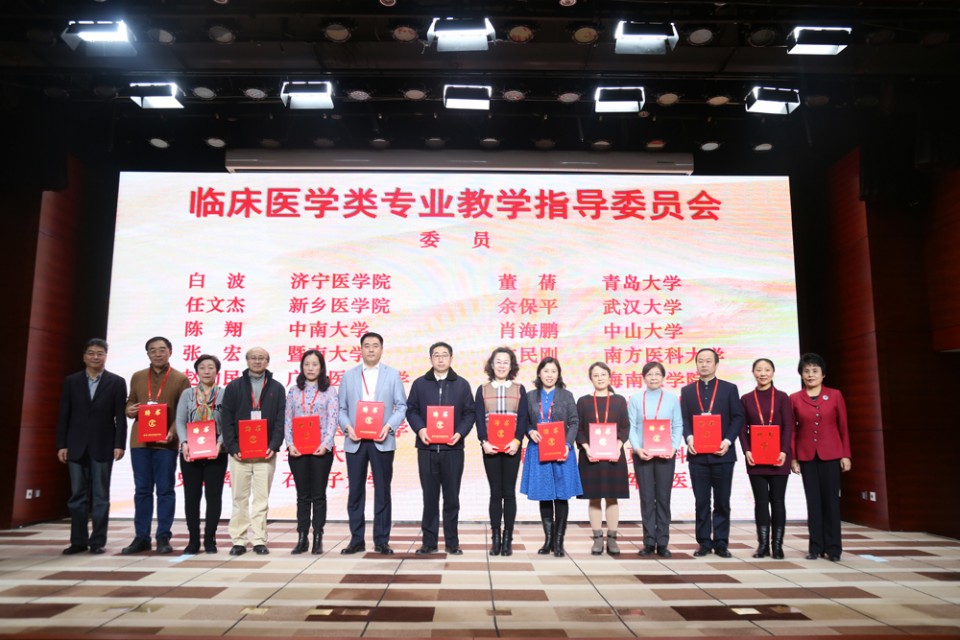 我院曹云霞教授入选临床医学类专业教学指导委员会委员,王珩教授入选临床实践教学指导分委员会委员,范晓晨教授入选儿科学专业教学指导分委员会委员,刘学胜教授入选麻醉学专业教学指导分委员会委员。教育部副部长林蕙青、高等教育司司长吴岩为委员会代表颁发聘书。林蕙青副部长指出,医学教育改革发展已经进入新时代,要抢抓健康中国等一系列新的重大历史机遇,积极迎接新挑战,并对新一届医学类教指委工作提出要求。吴岩司长作了题为“把握大势 干好大事 培养优秀医学人才——医学类专业教指委工作的第一要务”的重要报告,对新一届医学类教指委工作进行了整体谋划和全面部署。