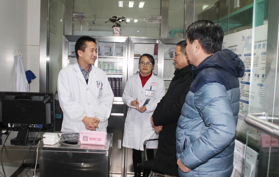 12月28日,安徽省卫生健康委员会党组成员、副主任董明培来到我院调研并指导药学门诊工作,委药政处处长郭德春、副处长饶磊等陪同调研。院长梁朝朝出席会议、副院长费广鹤、医务处处长陈光辉、药剂科负责人夏泉等陪同调研。