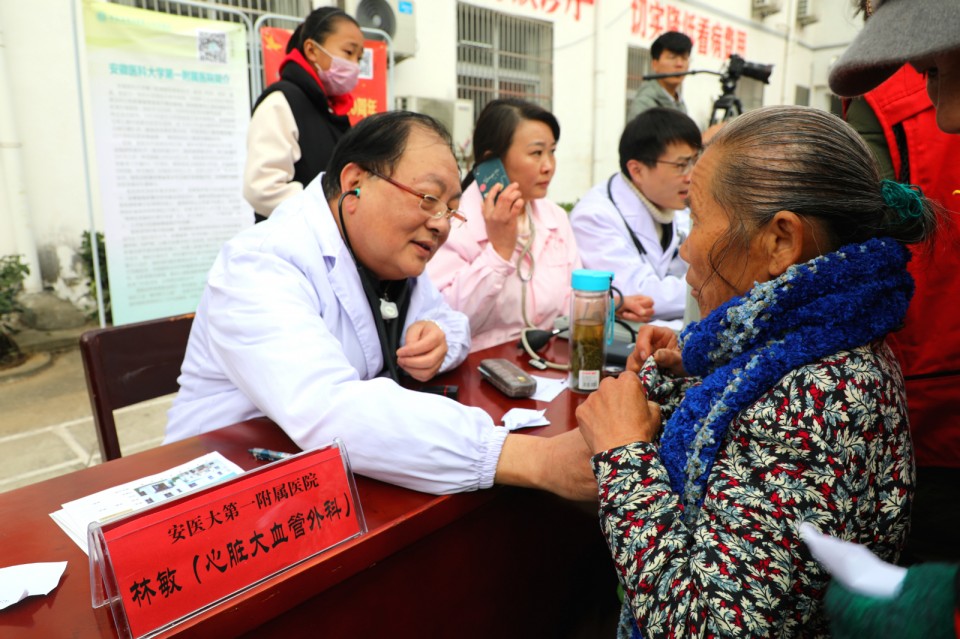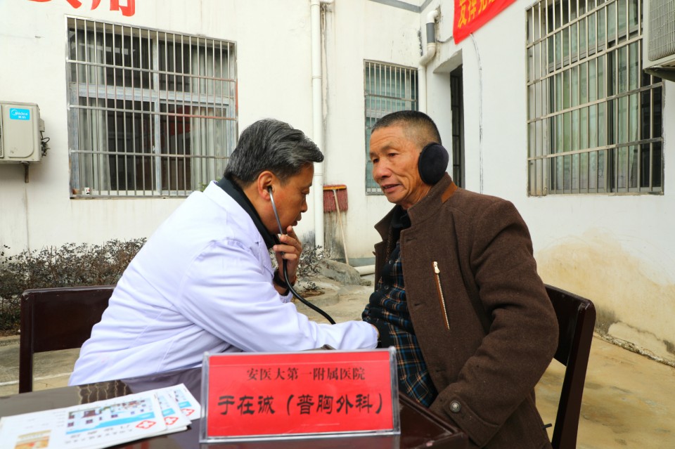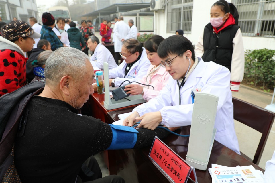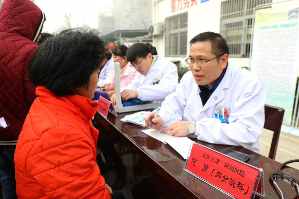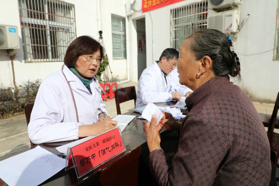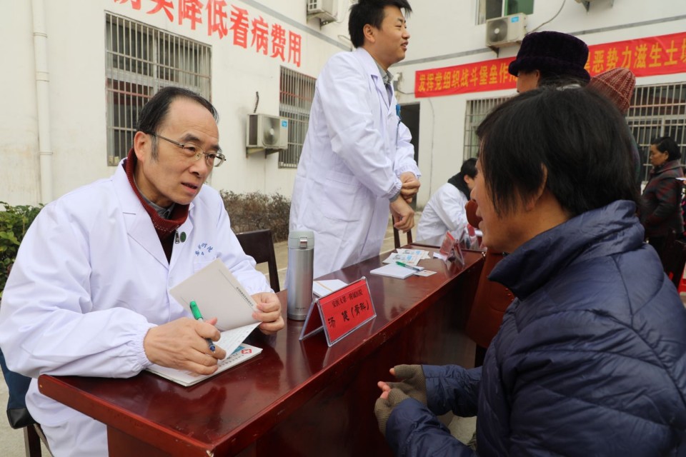 11月24日上午,医院开展庆祝改革开放40周年“江淮名医江淮行”暨青年卫生志愿者医疗队卫生帮扶太湖县百里镇大型义诊活动。院党委副书记戴晓支率5位“江淮名医”——儿科主任医师胡波、消化内科主任医师胡乃中、普胸外科主任医师于在诚、骨科主任医师汤健、疼痛科主任医师陈家骅及中共十九大代表、心脏大血管外科主任医师林敏、内分泌科主任医师何勇、移动心脏彩超检查专家金朝龙、心血管内科专家张益明等医学专家、第25期青年卫生志愿者为当地百姓送去健康服务。移动DR车和便携心脏彩超机全程技术支持。安徽日报摄影记者随队做了跟踪采访。太湖县委常委殷跃平、县卫计委主任王峰来到现场。