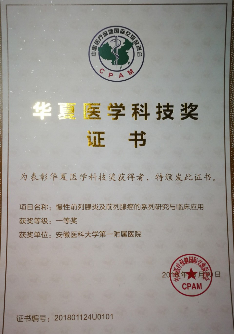 “慢性前列腺炎及前列腺癌的系列研究和临床应用”项目历时20余年,对慢性前列腺炎流行病学、发病机制、临床诊疗及前列腺癌的基础研究、早期诊断和手术治疗进行了系列研究,首次报道了我国慢性前列腺炎发病率,提出了慢性前列腺炎新的诊疗理念;提高了前列腺癌早期诊断率和手术治疗效果,填补多项国内空白,曾获安徽省科技进步奖一等奖两项,中华医学二等奖一项。多项研究成果写入了国内、国际泌尿外科疾病诊疗指南暨教科书,获得了一系列重大科研成果。