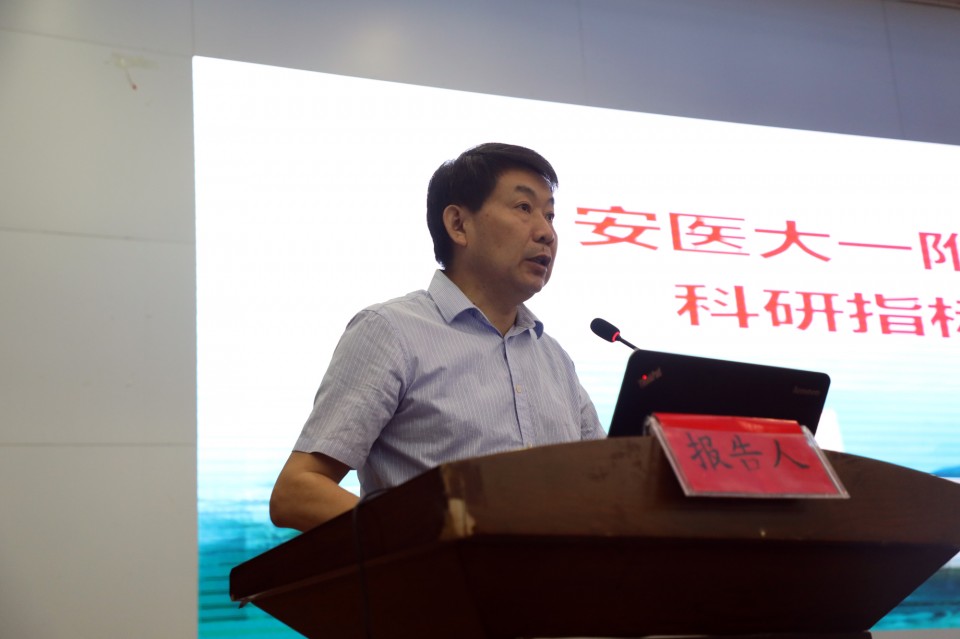 开幕式结束后,副院长费广鹤针对医院45个学科近三年来的学科排名、博士或副高以上职称人员数量、国家级科研项目、SCI论文、科技奖励等核心科技产出指标进行了详细汇报,并对国家级项目、高分SCI论文数量排名靠前的学科进行了表扬。