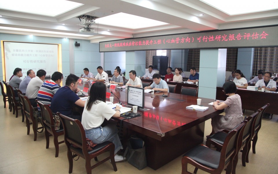 9月4日,省发改委、省卫生计生委委托第三方咨询公司到我院评估疑难病症诊治能力提升工程(心血管方向)项目可行性研究报告,省发改委社会处余璞主任、省卫生计生委规信处副处长韩伟出席项目评估会,院领导金宗祥、李家斌、王珩及相关职能部门、临床医技科室负责人参加了会议,会议由第三方咨询公司主持。