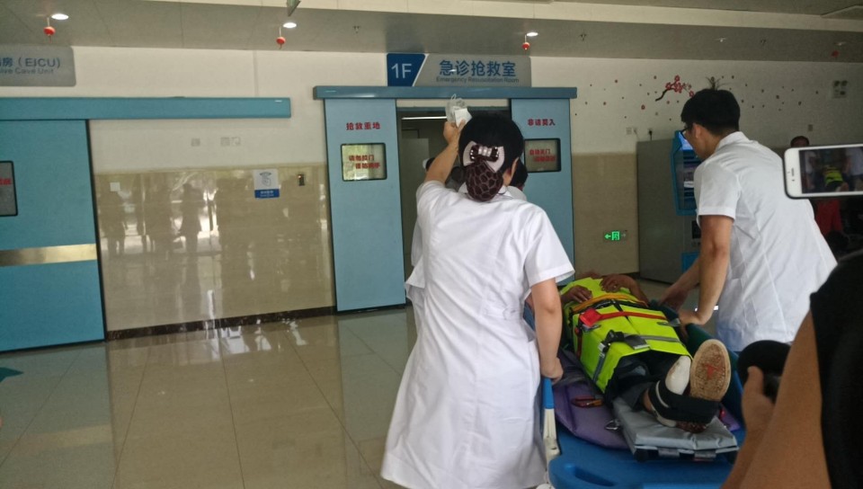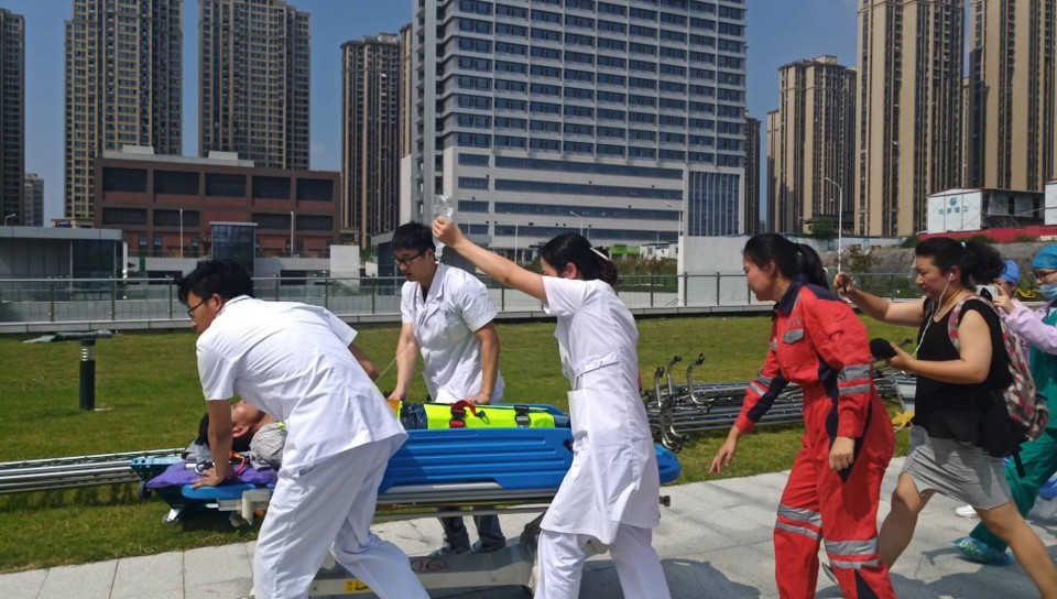 下午14:16,经消防员破拆施救,最外侧一名被困的男性伤者成功被救出,救生员将患者固定在直升机救援担架,通过绞车将伤者和救生员吊进机舱内。13分钟后,伤者成功送至安医一附院高新院区,通过绿色通道、直达急诊室。安医大一附院高新院区急诊科周登川主任介绍,患者入院后,经过急诊伤情判定和包扎,目前已紧急转入骨科进行后续治疗。