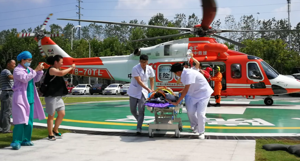 此次救援机型----金汇通航医疗直升机是升级版的“移动ICU”,是经原厂改装完成的中型双发专业医疗构型直升机。参与救援的随机医生朱振中告诉记者,机上配备除颤监护仪、呼吸机、注射泵、吸引器等急救所需的专业设备,在飞行的路途中可以对患者进行院前急救,维持患者生命体征的稳定。安医大一附院作为国家移动应急处置中心,通过与人保金汇通航合作,自2017年9 月 22 日以来已完成12起直升机空中救援,包括阜阳颍上高速公路救援、安徽首例直升机器官转运、枞阳县心脏病患者院前急救等。