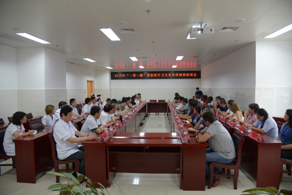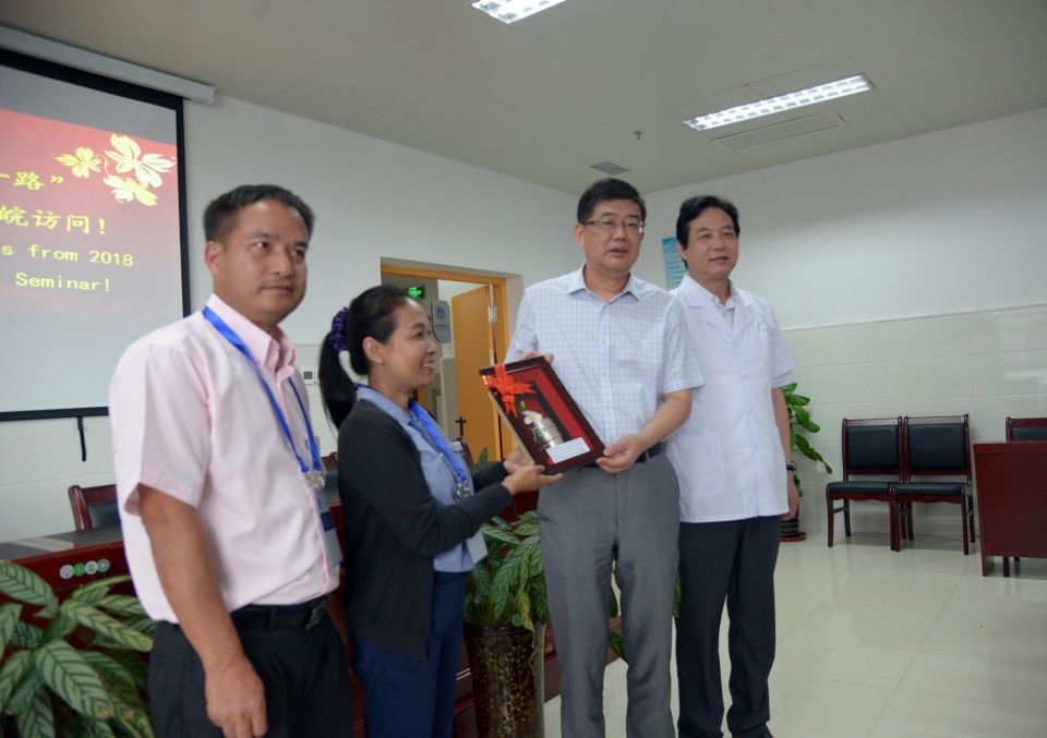 8月22日上午,2018年 “一带一路”国家医疗卫生官员研修班的成员来到我院高新院区访问交流。国家卫生计生委国际交流与合作中心副部长王健、省卫计委副主任金维加、省卫计委政策法规处处长谢瑞瑾、安徽医科大学王德斌教授、医院党委书记金宗祥出席座谈会。安徽省卫计委国合处处长徐雪晖主持会议。