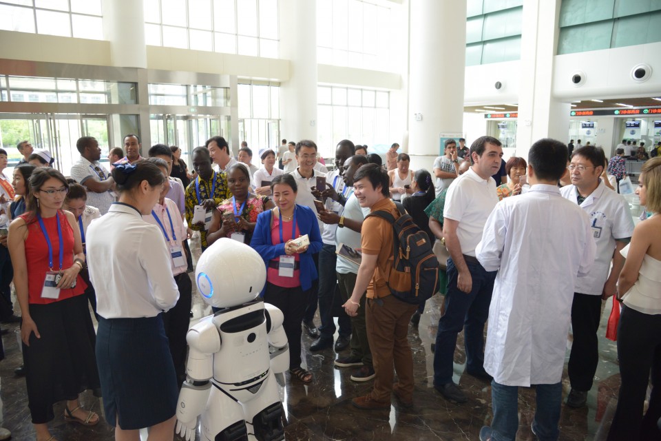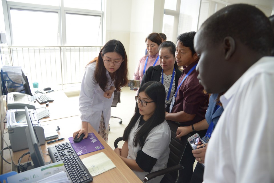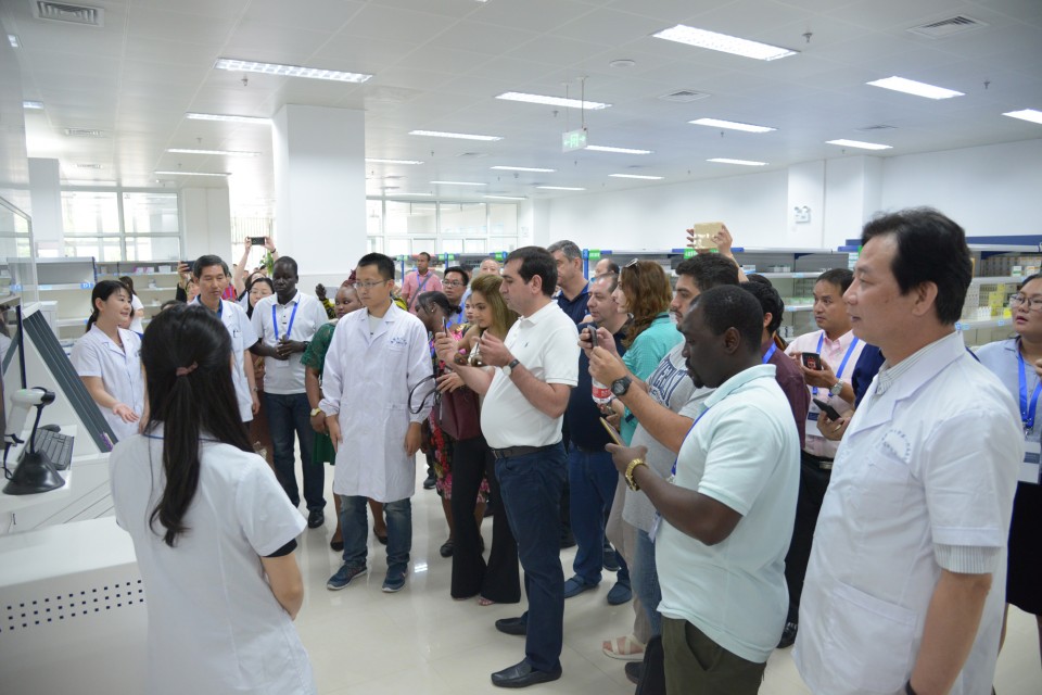 本次“一带一路”国家医疗卫生官员研修班的31名成员分别来自阿塞拜疆、老挝、蒙古、亚美尼亚、博茨瓦纳、马拉维、南苏丹、斐济8个国家。会后,研修班成员前往高新院区停机坪、急诊科及急诊ICU、门诊药房、静配中心、诊室及病房等地参观。大家纷纷对高新院区先进的设备和诊疗环境赞叹不已,来自阿塞拜疆的RUSTAM SALAYEV先生对医疗救援直升机产生了浓厚的兴趣,变成了“十万个为什么”:“这架飞机一次可以救几名伤员?”“这机舱里都配备了什么先进仪器?”“执行过几次救援任务了?”得到了工作人员的详细解答后,他竖起了大拇指。来自老挝的MANICHANH LOUANGXAY女士不时地拿出手机拍照,她说,这所美丽现代的医院给我留下了深刻的印象,先进的管理体系非常值得我们学习。亚美尼亚的VAHAGN VOSKANYAN先生则表示,非常希望和高新院区建立联系,进一步就信息化管理等方面的事项进行学习,“把这些先进的管理经验带回国,对于我们的医疗卫生管理事业发展会产生很大的帮助”。