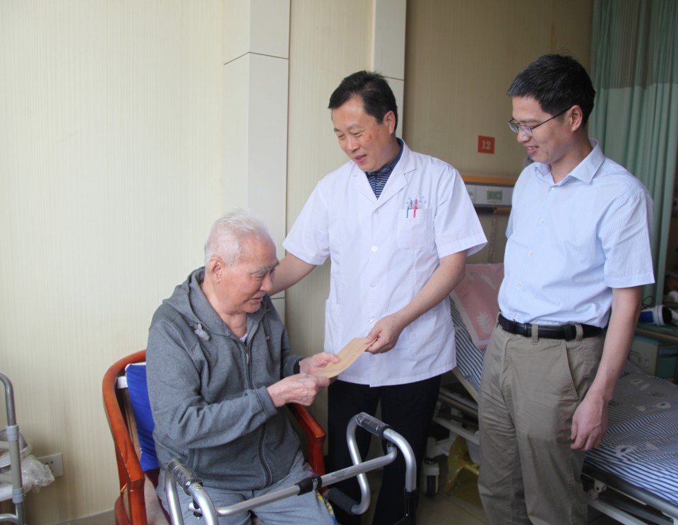 “七一”前夕,院领导金宗祥、梁朝朝、陈宏凯、戴晓支在党委工作部、老干科等部门负责同志的陪同下,前往离退休老党员的家中、病床前,为他们送去全院职工的慰问和祝福。院领导仔细询问了老同志生活情况和身体状况,感谢他们为党的事业和医院的建设发展做出的贡献,并鼓励他们克服困难、早日康复! (党委宣传部王异江默)