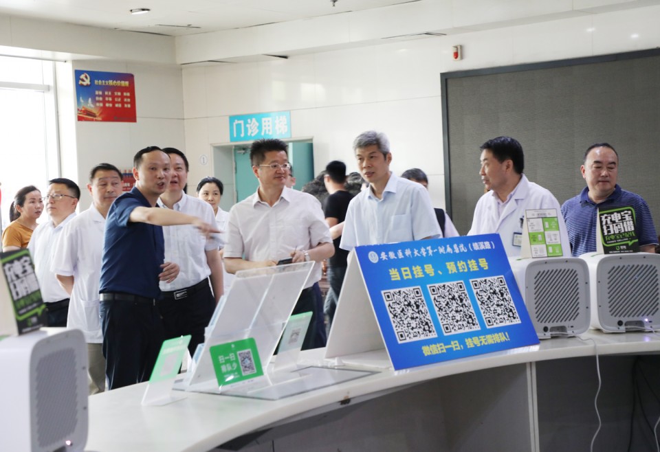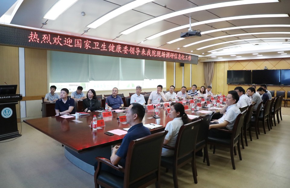 5月30日上午,国家卫生健康委规划与信息司副司长刘文先、安徽省卫生计生委副主任高俊文等一行来院调研,指导推进“互联网+便民、惠民”建设工作。院党委书记金宗祥,院长梁朝朝,副院长费广鹤、周典及相关职能部门参加了调研会。