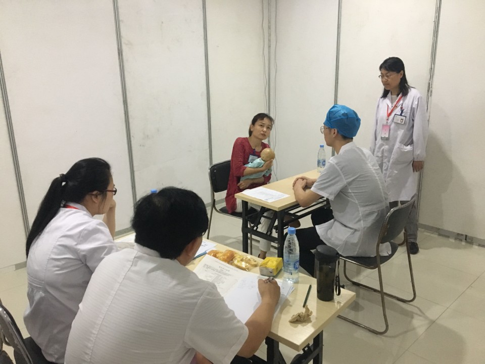 本次考官以我院专家为主,同时抽调第二附属医院、第四附属医院、附属巢湖医院、附属阜阳医院和安徽医科大学医院等126名考官,10名助理考官。两整天的临床基本技能考试在所有考官、助理考官、SP(标准化病人)、标准体检者和志愿者的配合下有序、高效顺利完成。