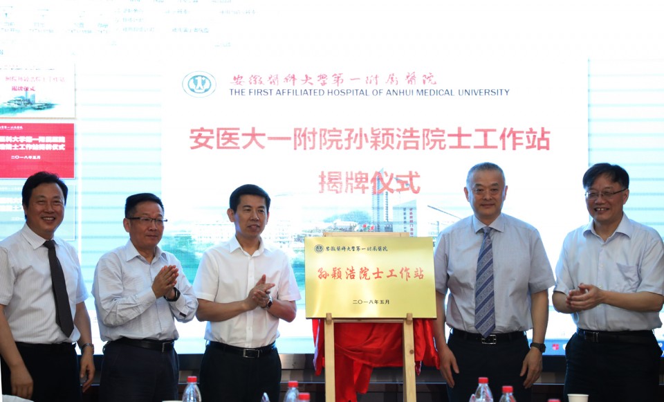 安徽省卫生和计划生育委员会主任于德志在讲话中表示,省卫生计生委对孙颖浩院士团队的到来表示热烈的欢迎。他指出,院士工作站是医疗机构和院士之间长期合作交流的平台和载体,希望充分发挥孙颖浩院士工作站的作用,在做科研、带队伍、强学科等各个方面推动我院的发展,也希望我院借此机会加强管理、加快发展,为健康安徽做出新贡献。