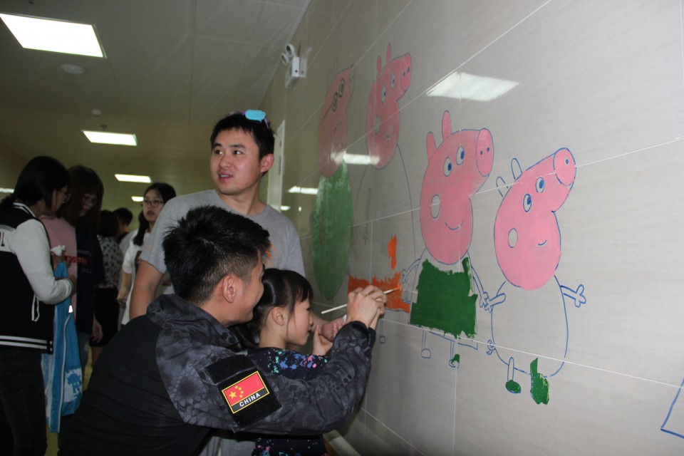 联欢会后,志愿者们领着小朋友们在病房的墙上进行彩绘创作,一起捏橡皮泥,在游戏中锻炼动手能力。医院及东航还向参加演出的小朋友们分发礼物,祝贺节日。