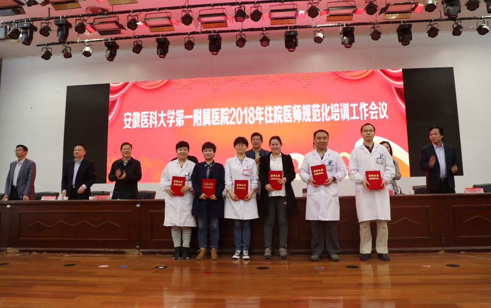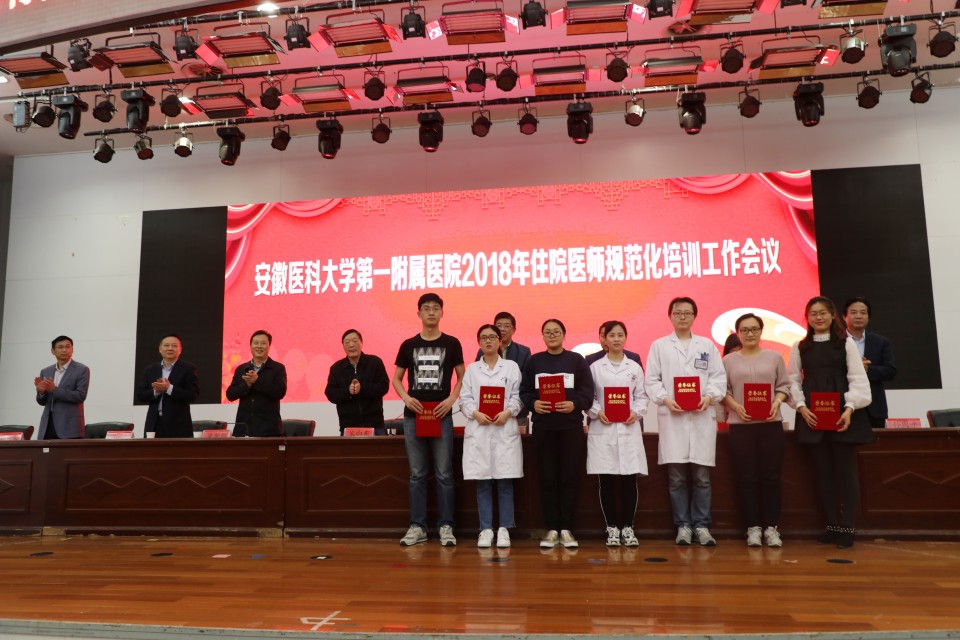 会议对2017年度住培先进人物进行表彰,副院长费广鹤宣读了表彰2017年度住院医师规范化培训各项比赛及评比获奖人员的决定并宣布获奖人员名单,与会领导为“住培优秀带教老师”、“优秀临床教学秘书”、“住培优秀学员”、教学查房大赛获奖老师及病例讲演大赛获奖学员颁发获奖证书。
