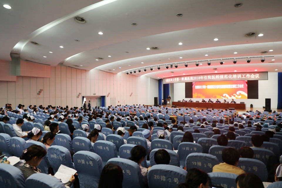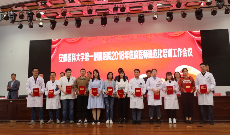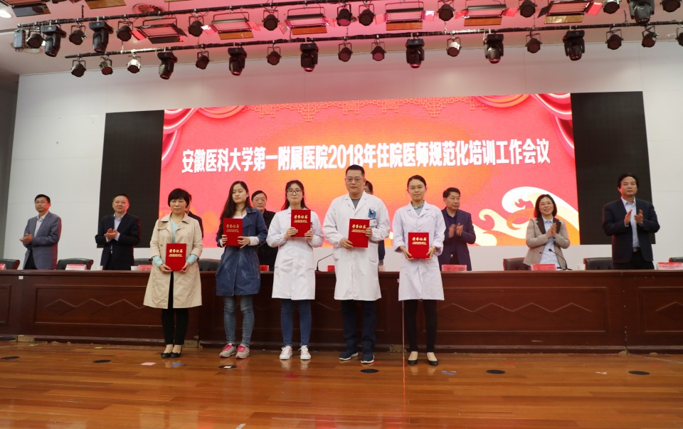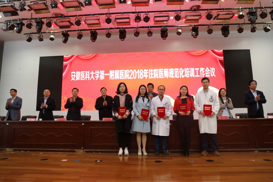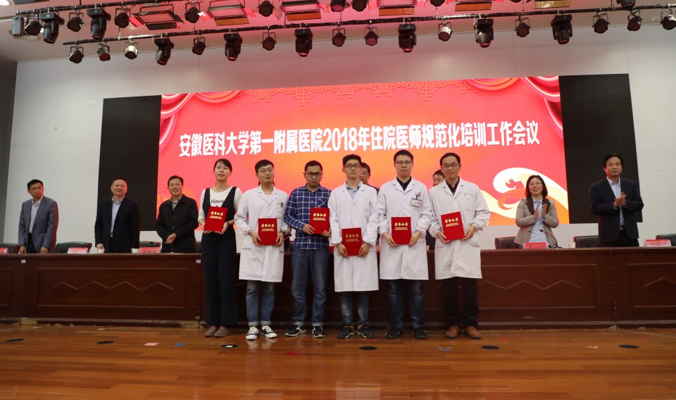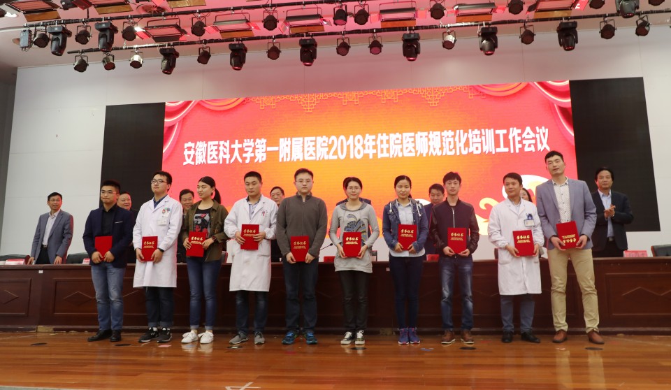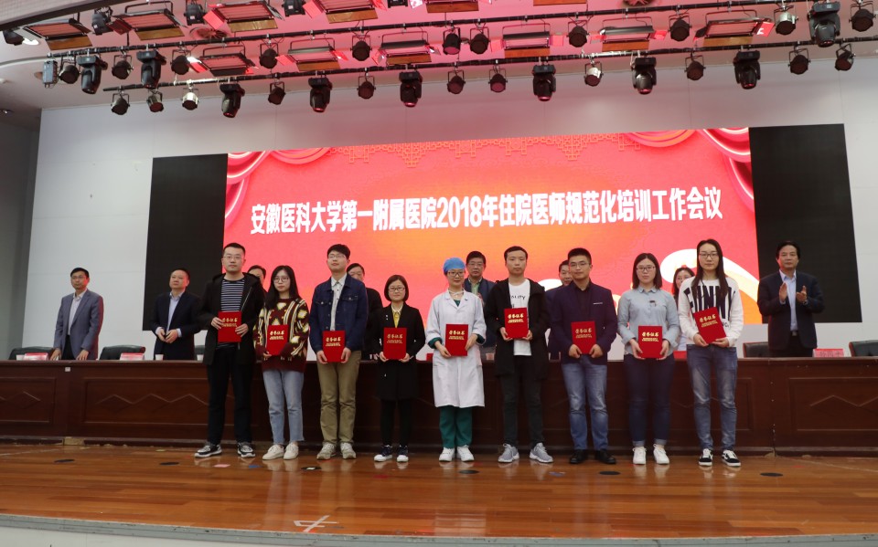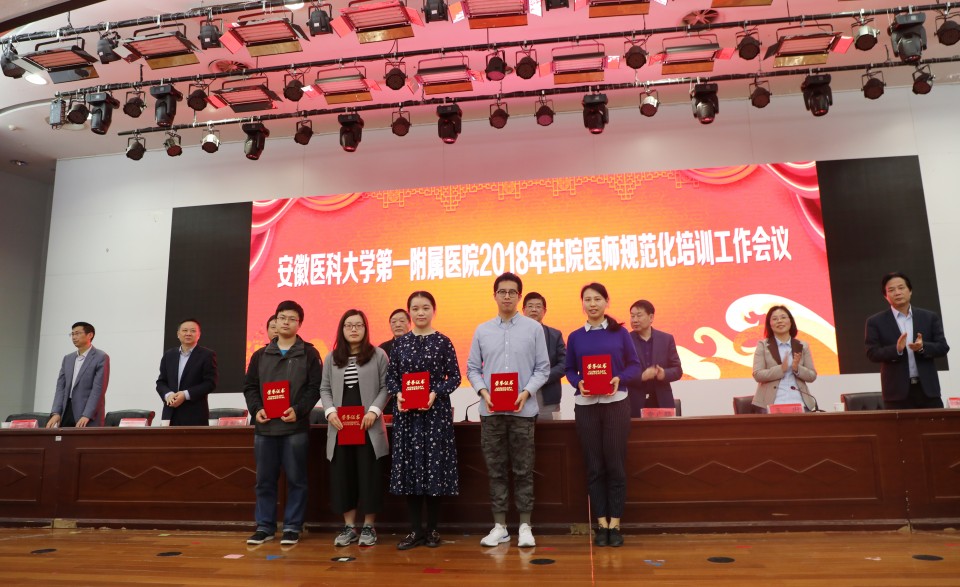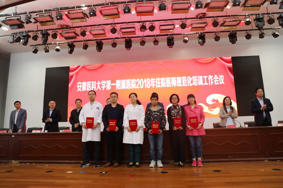 4月25日,医院在会议中心举行2018年住院医师规范化培训工作专题会议,对我院过去一年的住培工作进行全面的总结和回顾,对2018年工作进行动员部署,并对2017年度住培工作中涌现出来的先进个人进行表彰。省卫计委科教处处长宋向东、院党委书记金宗祥、院长梁朝朝、副院长费广鹤、副院长周典、副院长王珩、党委副书记戴晓支、副院长孙国平等出席会议,会议由副院长王珩主持,医院行政职能处室、临床医技科室负责人、住培基地主任、临床教学秘书、住培带教老师以及住培学员等参加了会议。