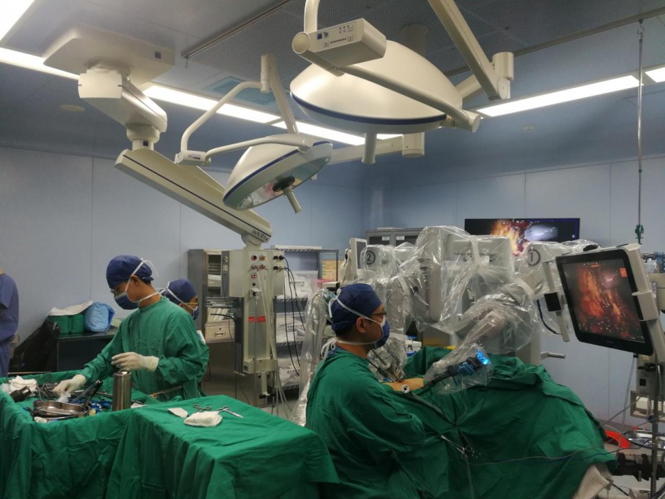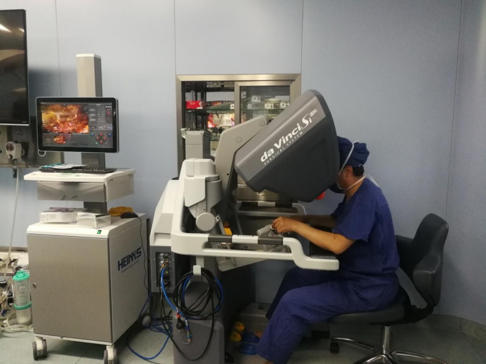 下午应上海长征医院泌尿外科主任王林辉教授邀请,梁教授赴上海长征医院参加长征医院肾癌专题研讨会及第十一届长征医院3D腹腔镜学习班。5日下午,梁朝朝教授赴长征医院手术室演示了机器人辅助腹腔镜右肾部分切除术,该患者体型肥胖BMI25.9,肿瘤位于右肾中上极腹侧直径约5.5cm位置较深邻近集合系统,紧贴腹膜邻近肝脏,肾切除RENAL评分9分;同时该例患者肾动脉存在分支副肾动脉变异。