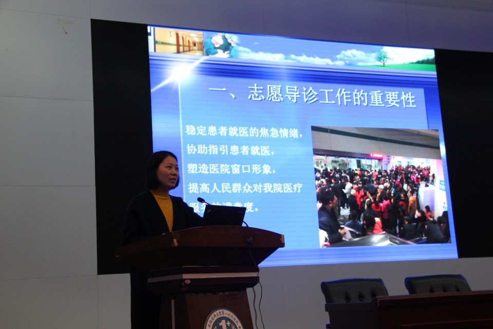 戴晓支代表医院欢迎各位同学积极踊跃加入医务志愿服务,将“奉献、友爱、互助、进步”的志愿服务理念和精神不断发扬光大。他指出,志愿服务是我院团委的一项品牌活动,参与活动的志愿者们越来越多,从研究生、本科生、拓展到医院职工子女初高中生,受到社会各界和上级主管部门的关注和大力支持。他希望同学们安排好学习和志愿服务的时间,通过志愿服务提升自己、了解社会,树立正确的人生观、价值观和世界观。鼓励大家在实践的过程中,及时向医院提出关于医院的流程、管理和患者需求方面的意见和建议,并帮助拓展志愿服务的新途径和新形式。他号召各位学生志愿者响应校党委“勇担社会责任,争做志愿先锋”的号召,为患者提供帮助,改善患者就医感受,弘扬社会正能量。