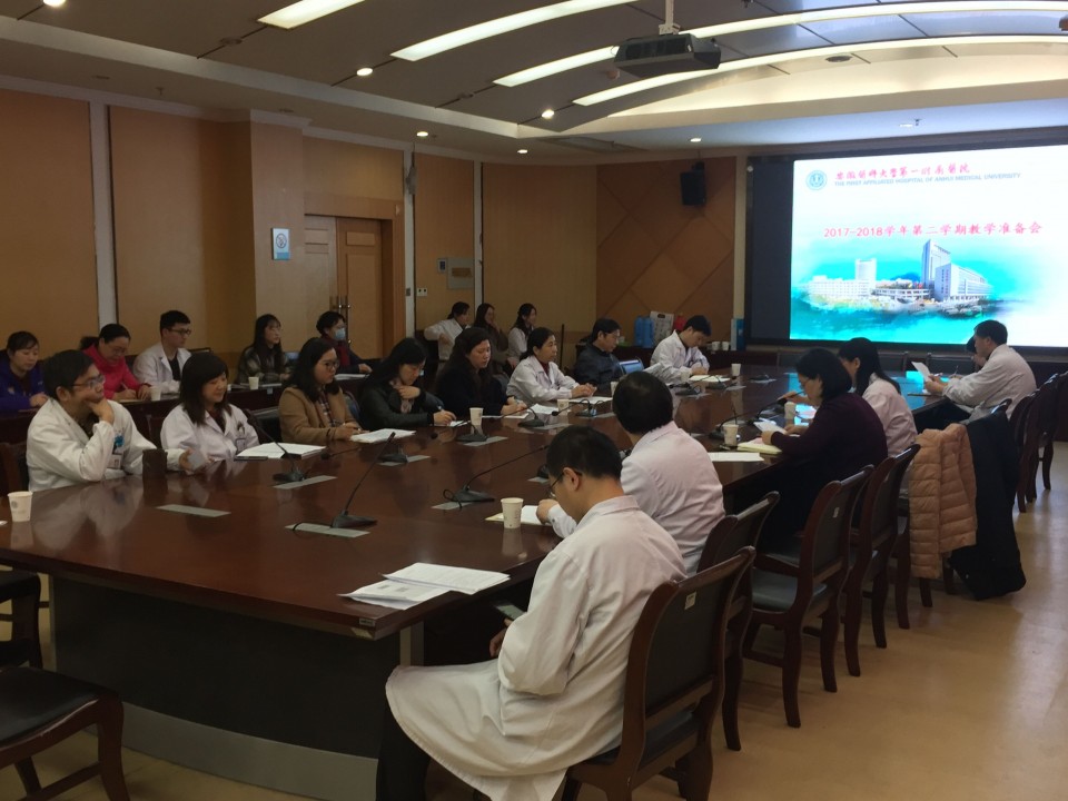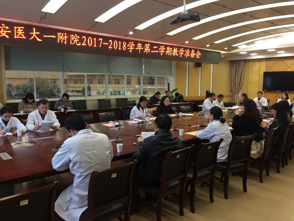 3月1日下午,在医院干部二楼会议室举行2017-2018学年第二学期教学准备会。分管副院长王珩、教育处处长张泓以及临床各教研室正、副主任、教学秘书及教育处工作人员参加会议。会议由副院长王珩主持。