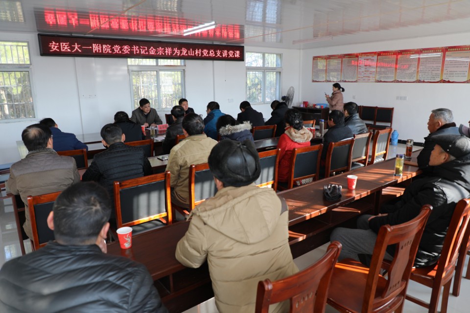当天上午,在龙山村党员活动室,党委书记金宗祥结合自身体会,为龙山村党总支上了一堂生动的党课。随后,院领导金宗祥、王润玲、王珩、戴晓支及部门负责人在当地乡、村负责人陪同下,一一入户探访贫困老党员、贫困村民,送上米油等慰问品,并向他们表示关心和问候。同时查看了医院捐资兴建的村集体经济企业养鸡场。