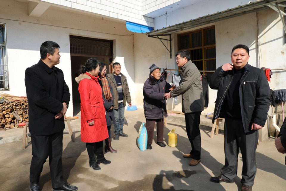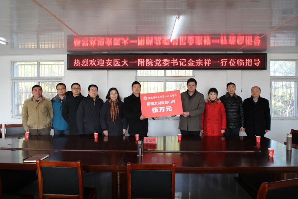 2月6日,院党委书记金宗祥、纪委书记王润玲、副院长王珩、党委副书记戴晓支及党委工作部、监审处、总务处部门负责人一行,前往医院扶贫点太湖县江塘乡龙山村,慰问贫困村民和医院驻村扶贫队队员,并代表医院向龙山村捐赠伍万元。