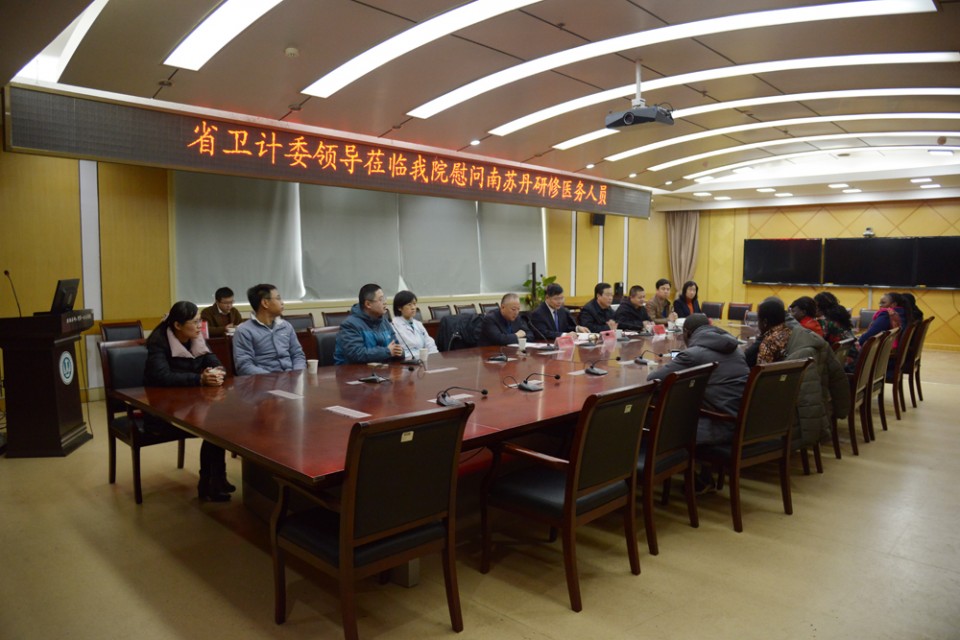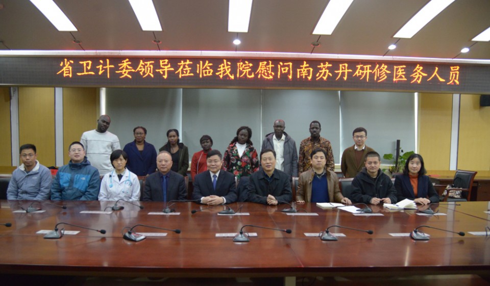 2月10日上午,省卫计委副主任金维加、援外办主任杜昌勇、援外办陈西山等一行赴我院慰问南苏丹研修医务人员。院长梁朝朝、院办主任吴三兵、南苏丹研修医务人员以及妇产科、肾内科、放射科、病理科、麻醉科等带教老师参加了会议,会议由援外办主任杜昌勇主持。