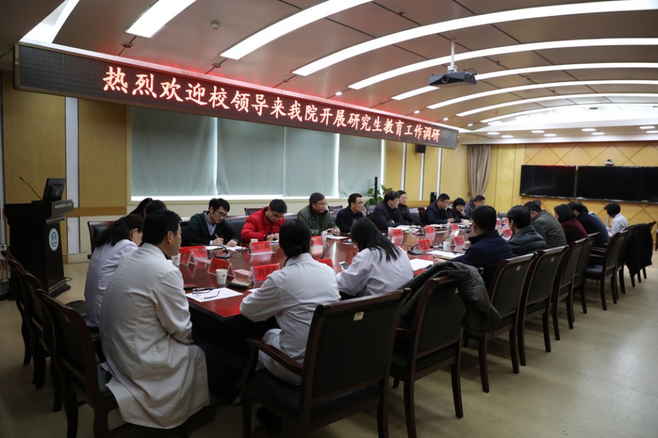 1月17日上午,校党委书记李俊、党委副书记刘群英率校组织部、研究生学院等部门负责人来我院,就研究生思想政治教育和培养管理工作进行专题调研。院党委书记金宗祥、副院长费广鹤、副院长王珩、院党委副书记戴晓支以及相关职能处室负责人及教研室主任、研究生党总支、支部书记参加了会议。