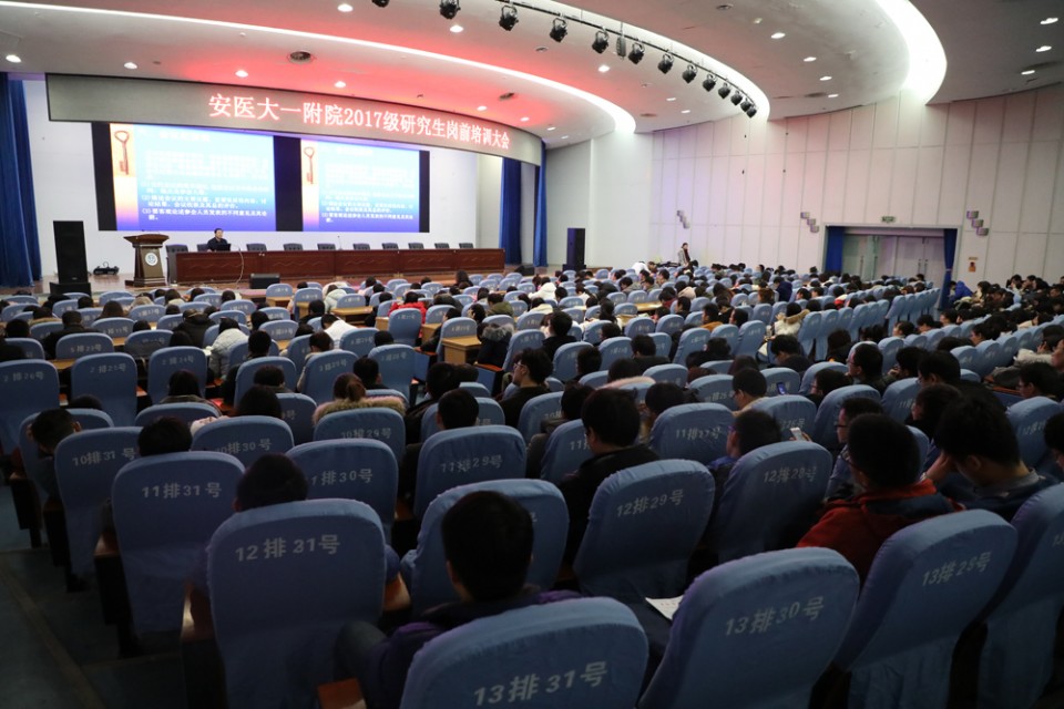 1月18日,医院在内科医技楼四楼会议中心对2017级199名学术型硕博士研究生进行岗前培训。