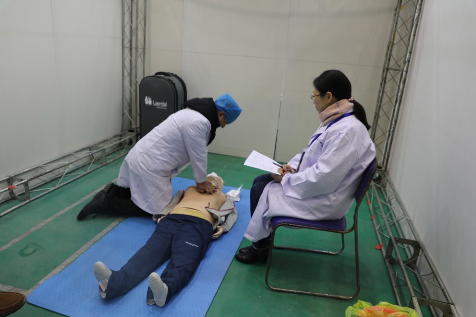本次考核采用多站式技能考核形式进行。我院毕业后教育处经过统筹安排,将笔试设置在安徽医科大学人文医学学院考点,技能操作设与安徽医科大学体育馆考点,口腔相关专业考站设置于长江路门诊部考点。保证了各专业考核能够公平、高效、有序的进行。为了对考生进行更加全面地评测,我院在全科专业的考核中引进了SP病人,通过SP病人与考生的场景模拟互动,考查出考生的真正诊疗水平。
