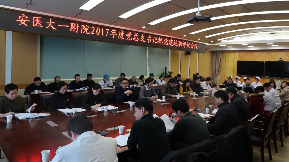 1月23日下午,医院在干部二楼会议室召开会议,对2017年度党总支书记抓党建进行述职评议考核。党委书记金宗祥、纪委书记王润玲、党委副书记戴晓支、全院各党支部书记参加述职考核会议。会议由党委副书记戴晓支主持。党委书记金宗祥在述职评议前发表讲话,他指出,开展党总支书记抓党建述职评议考核工作,是深入推进全面从严治党,进一步推动党建工作责任制落实,切实提升医院党建工作科学化水平的重要举措,目的是推动全面从严治党向基层延伸,进一步严密组织体系、严肃党内组织生活、严格党员教育管理、严明党建工作责任制,夯实医院基层党建基础。重点检查各党总支履行抓基层党建工作责任情况、基层党建工作进展情况、抓基层党建工作取得的成效、落实基层党建“三个清单”、以及发现党建工作存在的突出问题,对今后工作提出加强和改进思路措施,述职评议的过程是作为检验党建成果的过程。