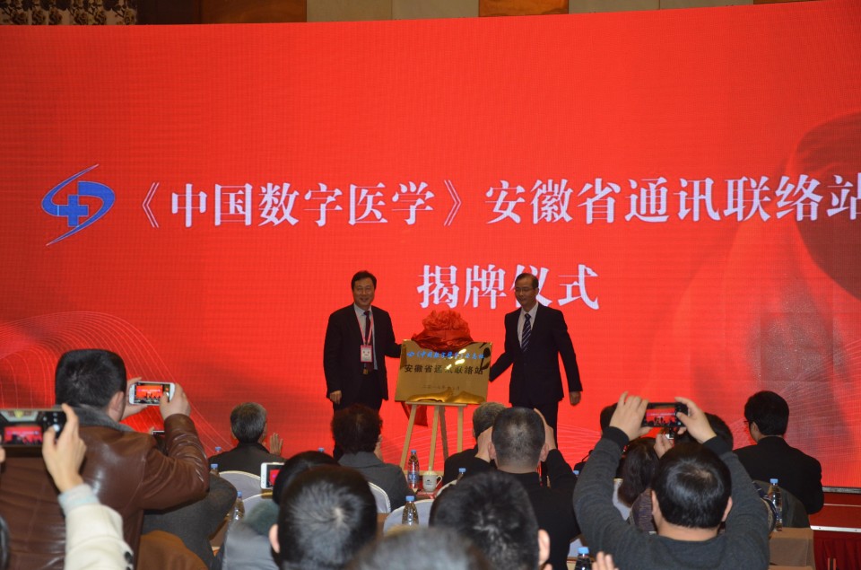 会议同期举行了《中国数字医学》杂志社安徽省通讯联络站签约仪式及揭牌仪式,省医院协会信息管理专委会主任委员、安医大一附院副院长周典与《中国数字医学》杂志社执行主编李华才出席签约仪式,安徽医科大学第一附属医院院长梁朝朝与《中国数字医学》杂志社社长陈校云共同为通联站揭牌并作重要讲话。