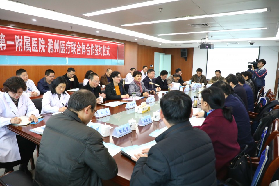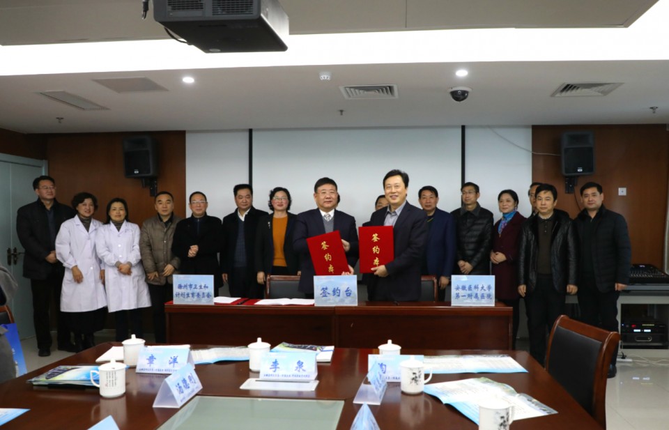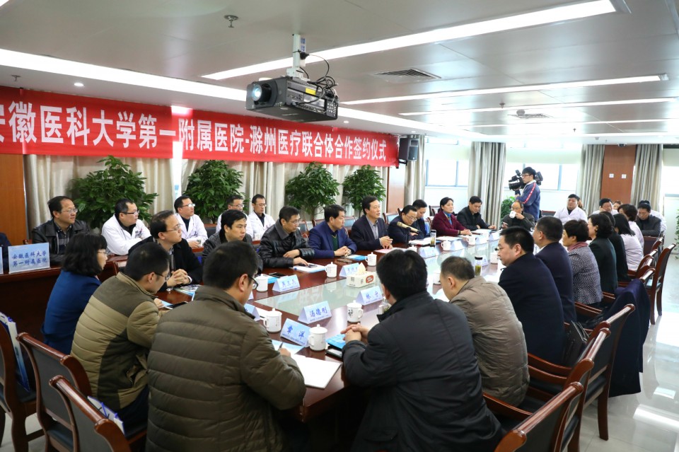 12月29日上午,安医大一附院和滁州市政府在滁州市第一人民医院南区签订合作协议,成立安徽医科大学第一附属医院--滁州医疗联合体。该医联体是以安医大一附院为龙头、滁州市第一人民医院、滁州市中西医结合医院等公立医疗机构组成的跨地区医联体。按照协议规定,安医大一附院将医疗托管滁州市最具影响力的滁州市第一人民医院、滁州市中西医结合医院,并通过一、二、三级医疗机构联合共建,探索推进1+1+1医疗改革模式,医联体将覆盖滁州市所有公立医院,确保省级优质医疗资源有效下沉基层,为健康滁州、健康安徽做出新的努力,探索建立分级诊疗的“安徽标杆”。