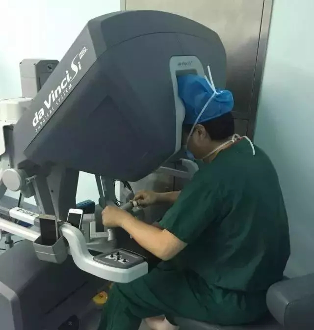 梁朝朝教授正在操纵“达芬奇”机器人进行手术