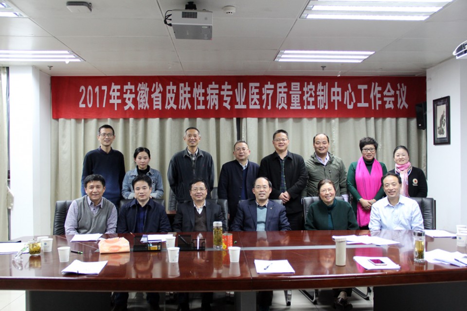 为贯彻落实省卫计委文件精神、进一步推进我省皮肤性病专业医疗质量控制相关工作,安徽省皮肤性病专业医疗质量控制中心于11月12日下午在我院举行了第一次工作会议暨中心成立大会。中心于2017年9月由省卫计委批准成立,挂靠单位为安徽医科大学第一附属医院。副院长金小干、省皮肤性病质控中心主任张学军、副主任张安平、张思平、金慧玲,以及全体质控中心成员出席本次会议。会议由质控中心常务副主任张安平主持。