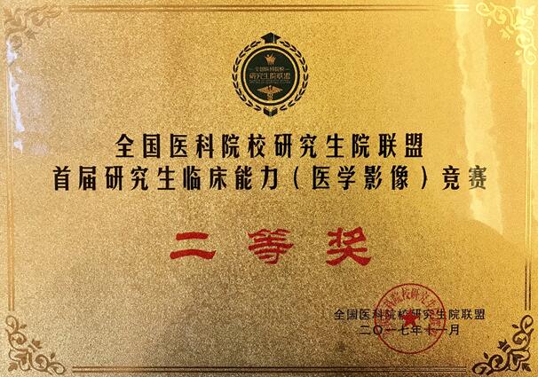 11月14日-15日,2017全国医科院校研究生联盟首届研究生临床能力(医学影像)竞赛在重庆举行。由我院影像医学的潘红利、赵雪梅、王侠,内科学(内分泌与代谢)的张小倩和外科学(骨外)的高松森等五位专业学位研究生组成的安徽医科大学代表队,凭借扎实的专业理论知识、娴熟的临床识图病例分析能力以及沉着稳定的临场发挥在全体参赛队伍中脱颖而出,荣获二等奖。