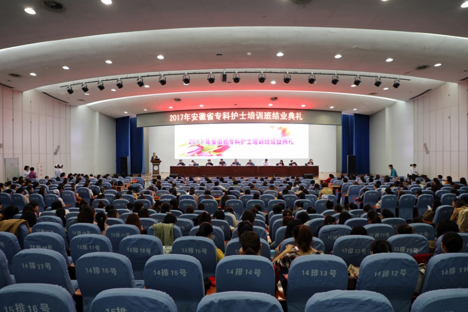 10月27日,安徽省专科护士培训结业典礼在我院举行。安徽省卫生计生委副巡视员赵东、副处长李家龙,安徽医科大学副校长余永强,院长梁朝朝等领导出席了会议。各专科护士培训基地、临床教学基地的领导及全体学员、部分优秀带教老师约300人出席了结业典礼。结业典礼上,安徽医科大学副校长余永强、安徽省卫生计生委副巡视员赵东致辞。蚌埠医学院第一附属医院护理部副主任郑海燕进行临床实践培训总结,安徽省卫生计生委医政医管处主任科员彭玉池宣读《关于表彰2017年专科护士培训优秀学员、优秀教师的通报》。来自全省各地的311名学员经考试合格获得省卫生厅颁发的专科护士资格证书,其中我院有8名学员和11名教学老师分别获得了“优秀学员”和“优秀教学老师”的称号。
