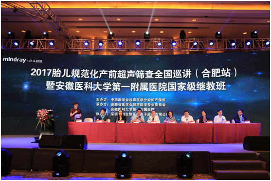 由中华医学会超声医学分会妇产学组主办,安徽省医学会超声医学专业委员会及我院承办的2017年胎儿规范化产前筛查全国巡讲(合肥站)暨安徽医科大学第一附属医院国家级继教班于9月9日-10日在合肥举办。本次大会由安徽省医学会超声医学专业委员会主任委员王玲教授主持开幕式,我院副院长王珩出席开幕式并致辞。本次大会邀请了哈尔滨医科大学附属第二医院田家玮教授、解放军301医院汪龙霞教授、南京医科大学苏州医院邓学东教授、深圳大学第一附属医院王慧芳教授、安医大二附院姜凡教授及安医大一附院王玲、郑慧、张超学等教授就目前产前超声学界的热点问题并结合我省实际情况进行了专题讲座,并就产前超声指南的最新解读等问题做了专题报告。他们的授课内容紧贴日常工作实际,语言风趣幽默,获得了与会代表的一致好评。