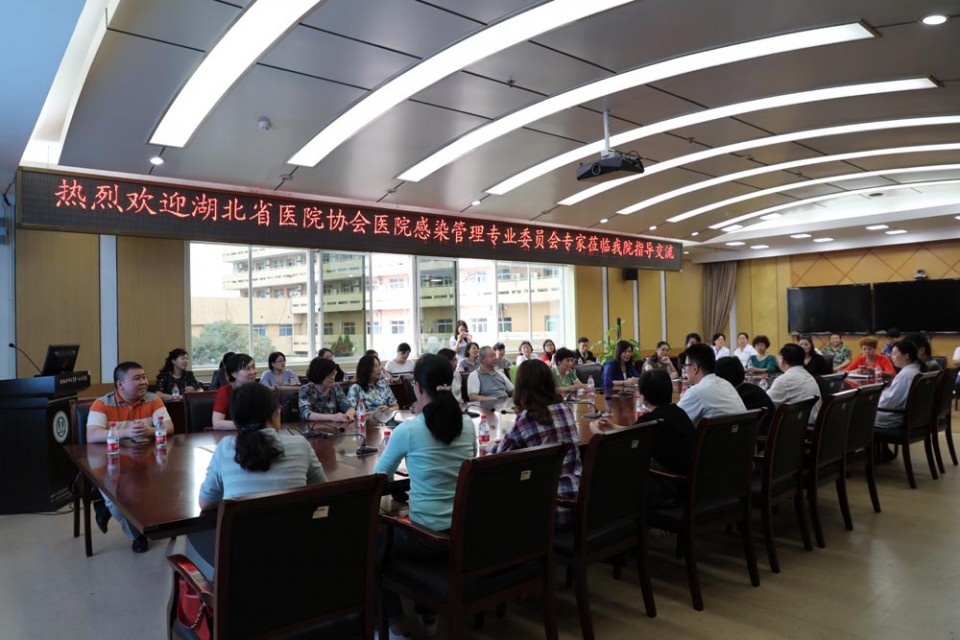 9月21日下午,湖北省医院感染管理专业委员会考察团一行四十七余人来我院参观并就我院感染管理相关工作的开展、全省医院感染控制方面的经验进行了交流,考察团一行由华中科技大学同济医学院附属协和医院感染科邓敏主任带队,成员包括湖北省各地市医院感染管理科主要负责人,我院副院长金小干、感染管理科马红秋主任及医院感染重点部门的相关负责人参加了本次接待。 会议在干部保健中心楼二楼会议室召开,金小干副院长首先代表医院欢迎医院感染管理专业委员会考察团来我院交流学习并介绍了我院近年来的总体发展概况、医院感染管理的建设成果及现状。随后马红秋主任对我院医院感染管理工作以及我省医院感染管理质量控制中心的工作做了相关汇报,重点介绍了我院手卫生专项活动、我省医院感染管理专项督查、感染管理专职人员培训等方面的经验。湖北省医院感染管理专业委员会高度评价了我院医院感染管理工作的成果和水平。交流研讨会后,考察团成员由相关重点职能处室进行了对口接待,并深入科室与工作人员面对面交流工作心得。