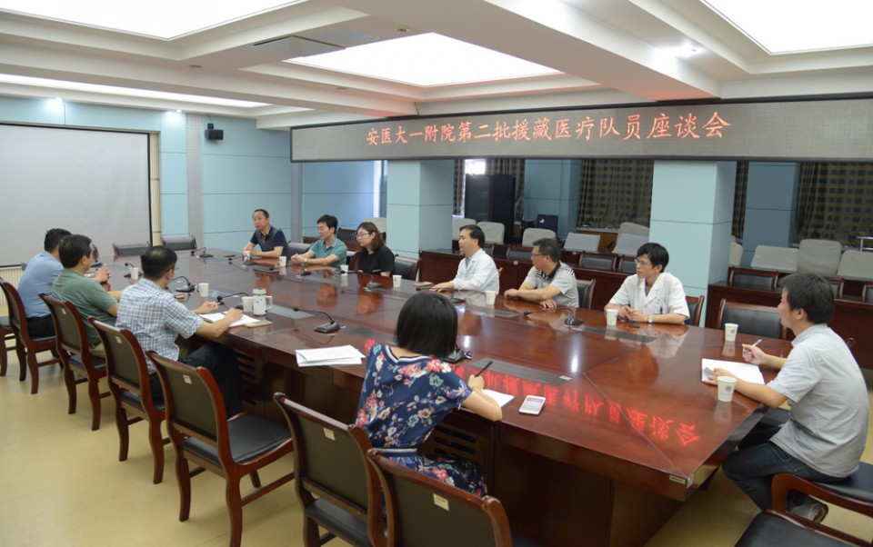 随后,院领导们听取了三名医疗队员对援藏期间生活和工作情况汇报。援藏队员们克服当地条件落后的困难,在山南医院开展了一系列的卫生支援工作,得到了当地卫生局和医院的一致好评,积极展示了安医人良好的精神风貌。