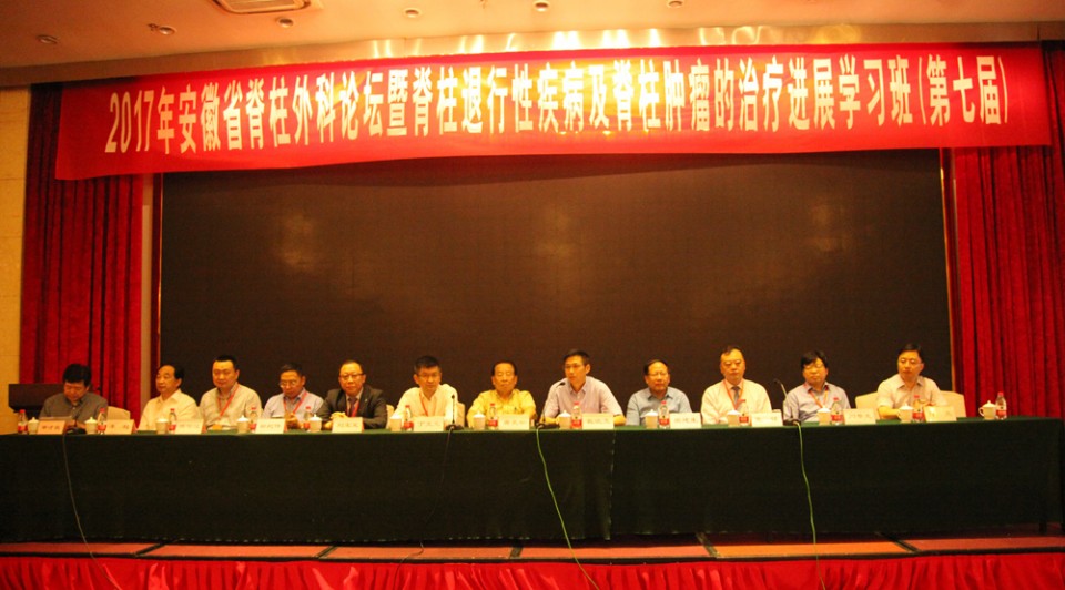 2017年7月7日至9日,我院脊柱外科举办的“2017年安徽省脊柱外科论坛暨脊柱退变性疾病及肿瘤的治疗进展学习班 (第七届)”在合肥梅山饭店成功召开,来自省内外共计300余名脊柱外科医师参与本次会。院党委副书记戴晓支出席开幕式并致辞。会议由申才良教授主持,苏州大学、复旦大学、南京医科大学、河北医科大学、哈尔滨医科大学、四川大学、上海交通大学、首都医科大学共11名国内知名专家授课,本次会议还邀请到美国著名脊柱外科专家华盛顿州立大学医学院张方迤教授前来授课。