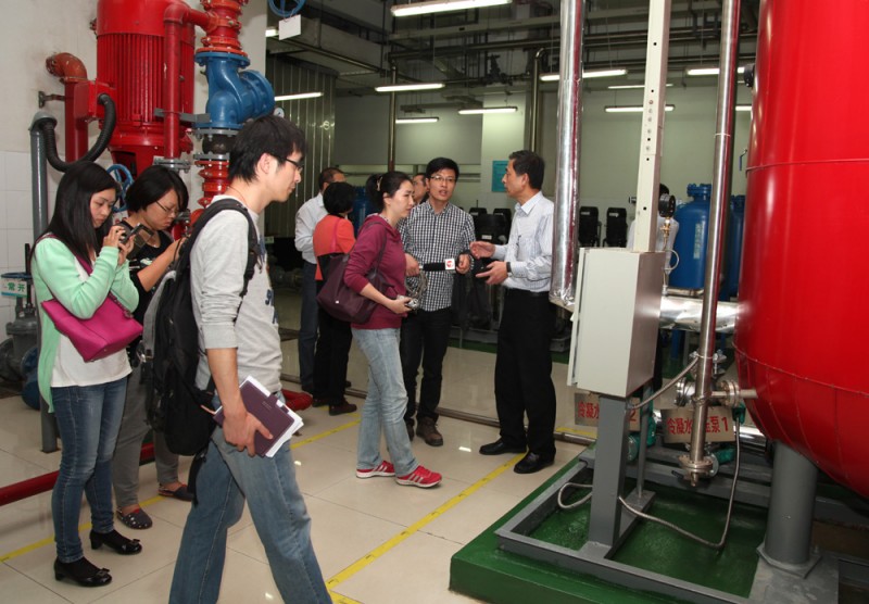 会上,我院还向采访团现场演示了我院的能源使用监测系统。系统通过24小时实时监测,可以清楚地显示我院每栋楼每月、每天、每时的用水量,并可以根据用水量的走势图判断是否有骤增、骤减的现象,从而提供相应地节水改革方案。相关处室陪同媒体记者先后参观了冷凝水循环节水系统,详细讲解了冷凝水循环利用,节水减排的工作原理。