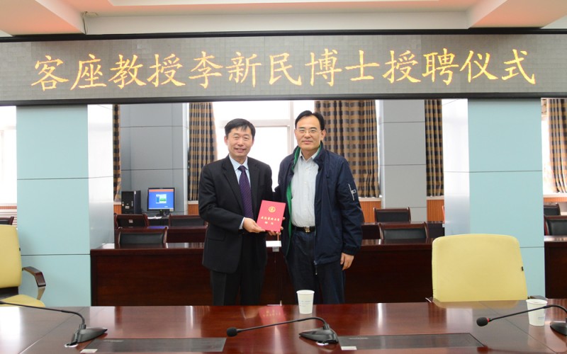 2014年10月20日上午,加拿大阿尔伯塔大学李新民(Li Xin-Min)博士的客座教授授聘仪式在安医大一附院行政楼5楼会议室举行。院党委书记梁朝朝、院长余永强、副院长费广鹤、人事处处长吴晓莉出席了仪式。副院长费广鹤主持受聘仪式,并简要介绍了李新民教授在科研及临床上的成就。随后,院长余永强向李新民博士颁发了客座教授聘书。