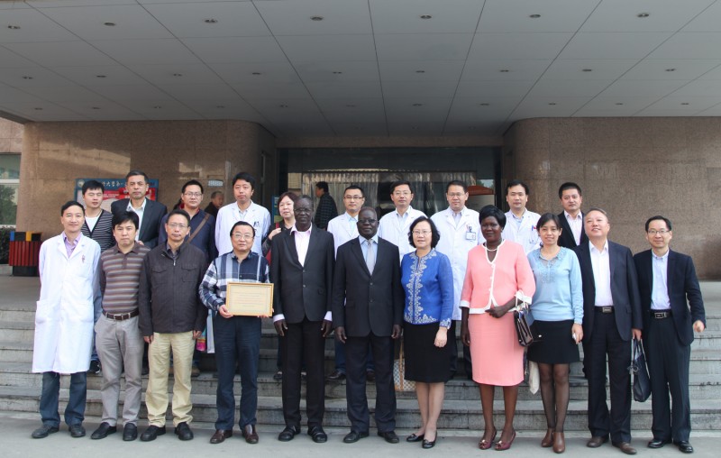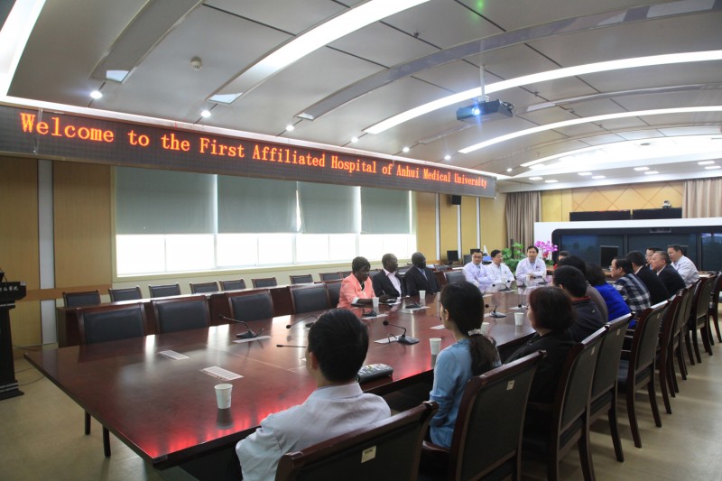 2014年10月23日上午9点,南苏丹朱巴教学医院院长瓦尼.罗里克.拉多、泌尿外科主任加朗.邓.纽奥尔和口腔颌面外科主任乔伊.鲁拜娜.卢玛雅访问我院,陪同访问的领导有安徽省卫计委外事处处长王锐、外事处副处长杜昌勇和援外办佘林夏子。