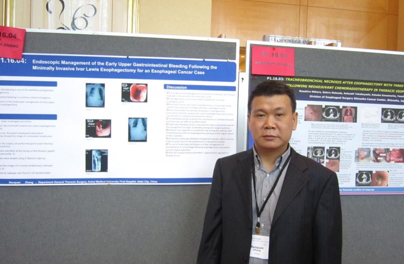 值得关注的是,包括北京、上海、河南、福建、重庆、四川、江苏及我省在内的开展食管肿瘤外科治疗较多的国内单位在本次大会上亦有学术报告或壁报交流。我院普胸外科团队在科主任于在诚教授带领下微创食管癌治疗领域积累了丰富的经验,特别是在胸腹腔镜联合食管癌切除胸内吻合(TLE-chest)方面,国际上首创镜下手工制作荷包技术应用于胸内吻合,技术特点鲜明、独树一帜,与微创食管癌切除颈部吻合(TLE-neck)对比明显降低术后喉返神经损伤并发症。在全国位居前列。作为食管癌高发国家,我们应投入更多基础与临床力量来研究、治疗食管癌,积极总结经验,从而提升中国在国际食管疾病会议上的地位。