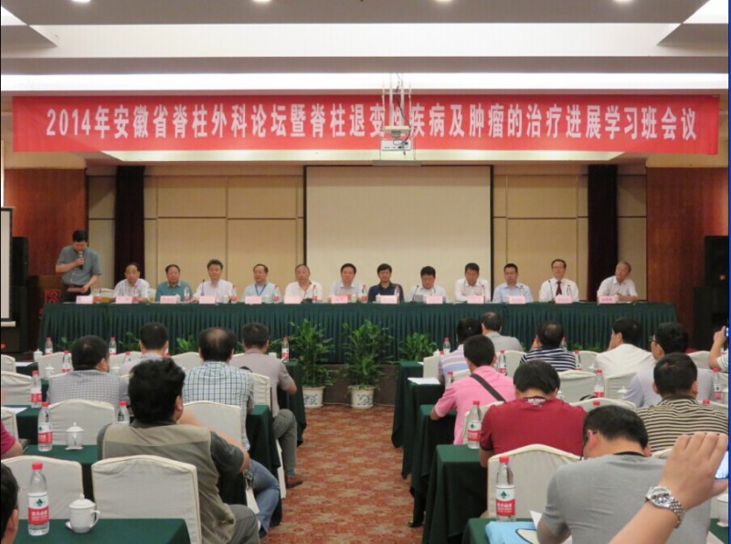 8月1日至3日,由我院脊柱外科主办的“2014年安徽省脊柱外科论坛----暨脊柱退变性疾病及脊柱肿瘤的治疗进展学习班(第四届)” 在合肥梅山饭店顺利召开。骨科主任申才良教授主持会议,院领导周典副院长出席了会议,并做了重要讲话。来自省内外各级医院300余名学员参加了会议,会议邀请来自台北振兴医院、北京大学第三医院、北京协和医院、第四军医大西京医院、苏州大学第一附属医院等13名国内知名专家进行学术讲座,唐天驷、陈仲强、周温祥、陈亮、沈慧勇、罗卓荆等教授对目前常见的脊柱退变性疾病如腰椎间盘突出症,腰椎滑脱,脊柱侧凸及脊柱肿瘤等外科治疗做了详细演讲,对相关疾病的手术治疗做了规范指导,突出了手术治疗过程中的重点及要点,为脊柱外科的基础疾病的规范化手术治疗指明了方向,会议取得圆满成功。