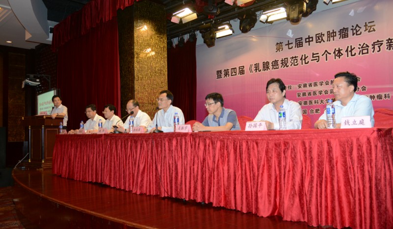 7月4~5日,由我院干部肿瘤科承办的第七届中欧肿瘤论坛暨第四届《乳腺癌规范化与个体化治疗新进展》学习班在合肥市召开。院长余永强、副院长孙国平、省卫计委医政处副处长吴振宇等出席会议并致辞,开幕式由我院肿瘤内科潘跃银教授主持。近300名来自全省肿瘤学及乳腺病学专业的医务人员参加会议。